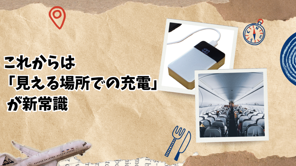 もし機内でモバイルバッテリーを使用してスマートフォンなどを充電する場合は、必ず「見える場所」で行ってください。
