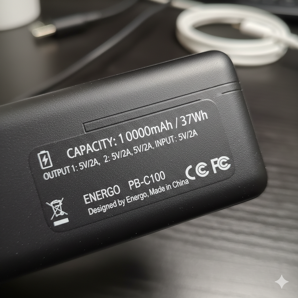 10,000(mAh) × 3.7(V) ÷ 1000 = 37Wh